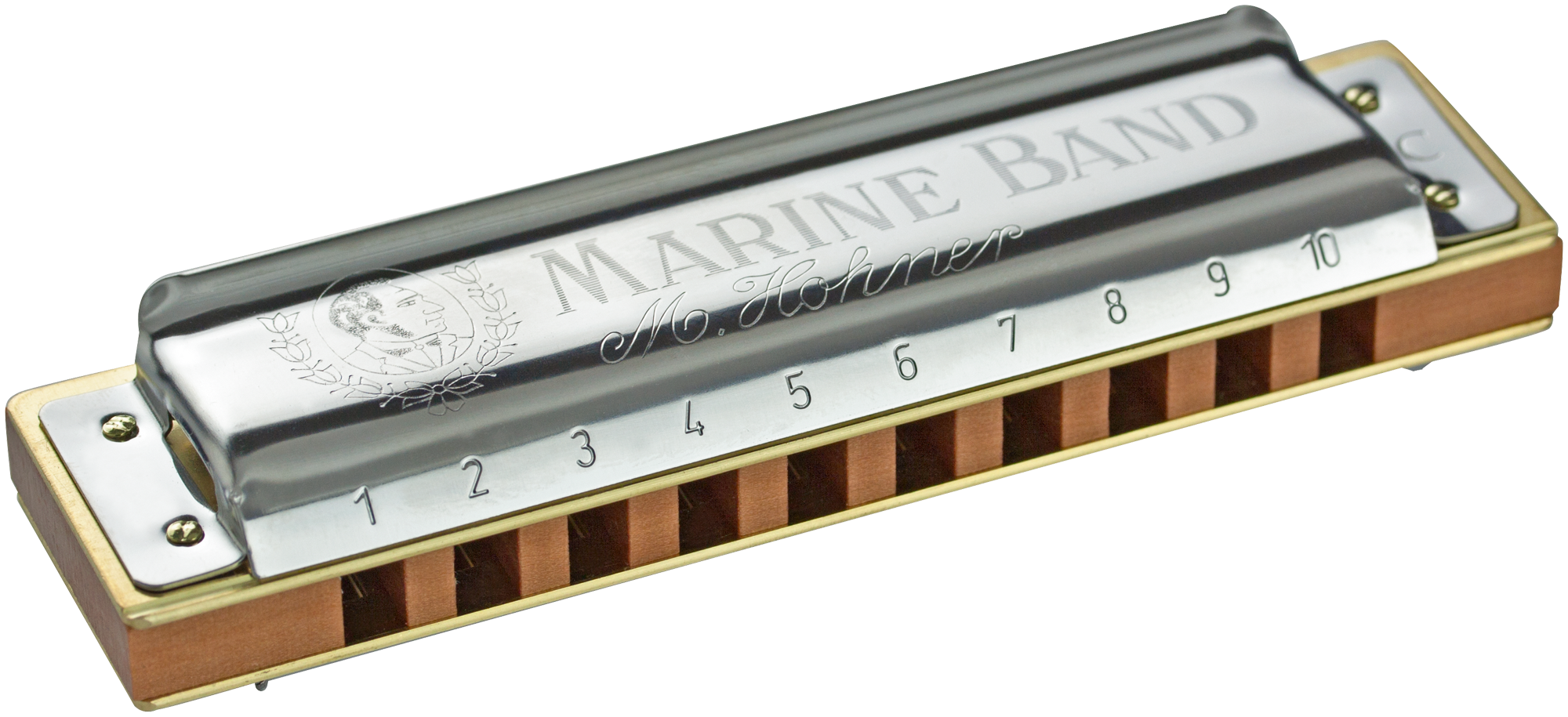 Der Name " Marine Band" steht für eine lange, erfolgreiche Tradition in der Herstellung von hochwertigen Mundharmonikas. Ein Kanzellenkörper aus Birnbaum-Holz und die gewölbten Edelstahldeckel mit seitl. Schallschlitzen verleihen dem Instrument ihren legendären Klang, der auf vielen klassischen Blues-Aufnahmen zu hören ist.