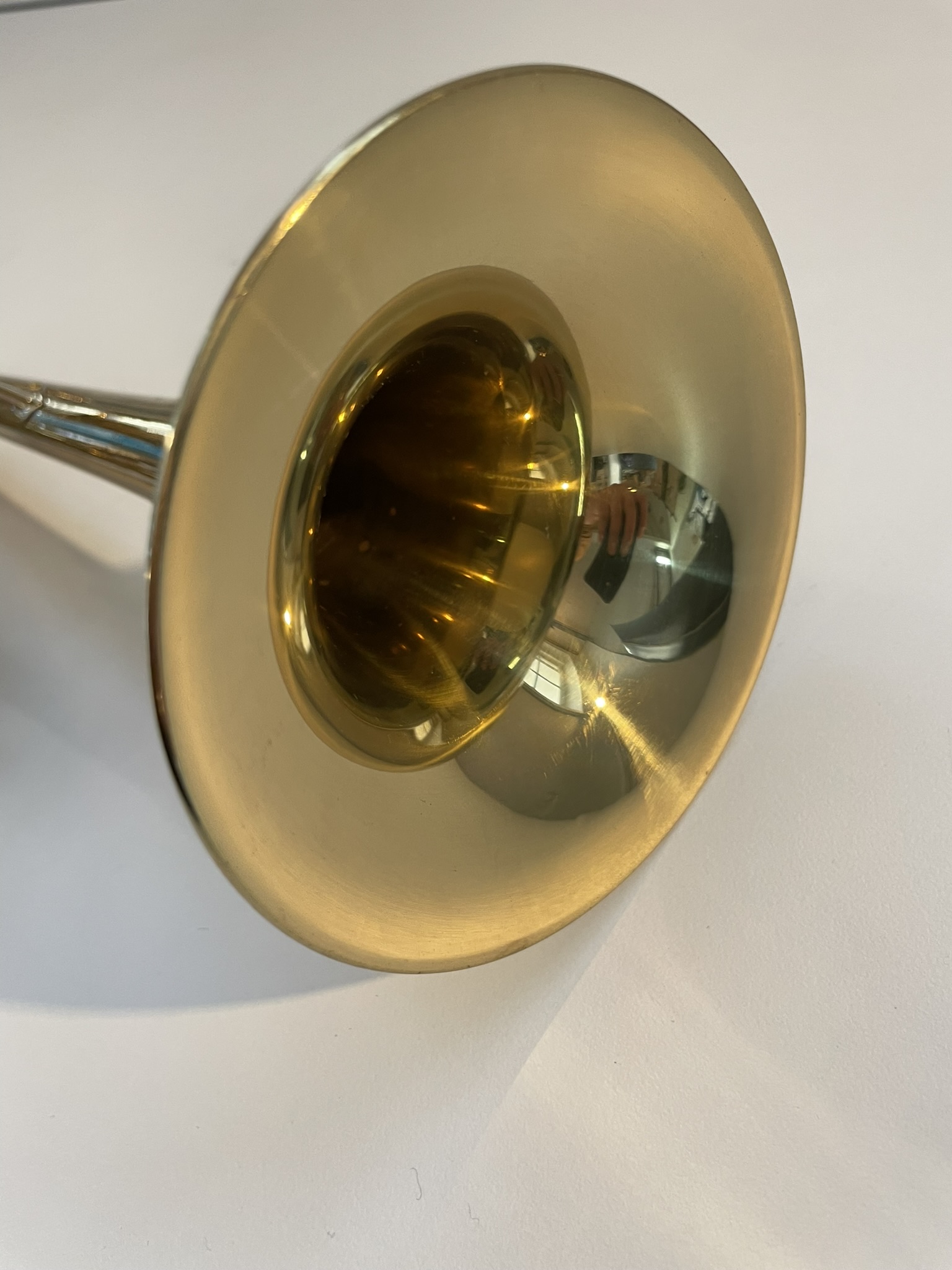 Die Trompete wurde in unserer Fachwerkstatt komplett gereinigt und technisch überholt. Die originale Lackierung ist vollständig erhalten.