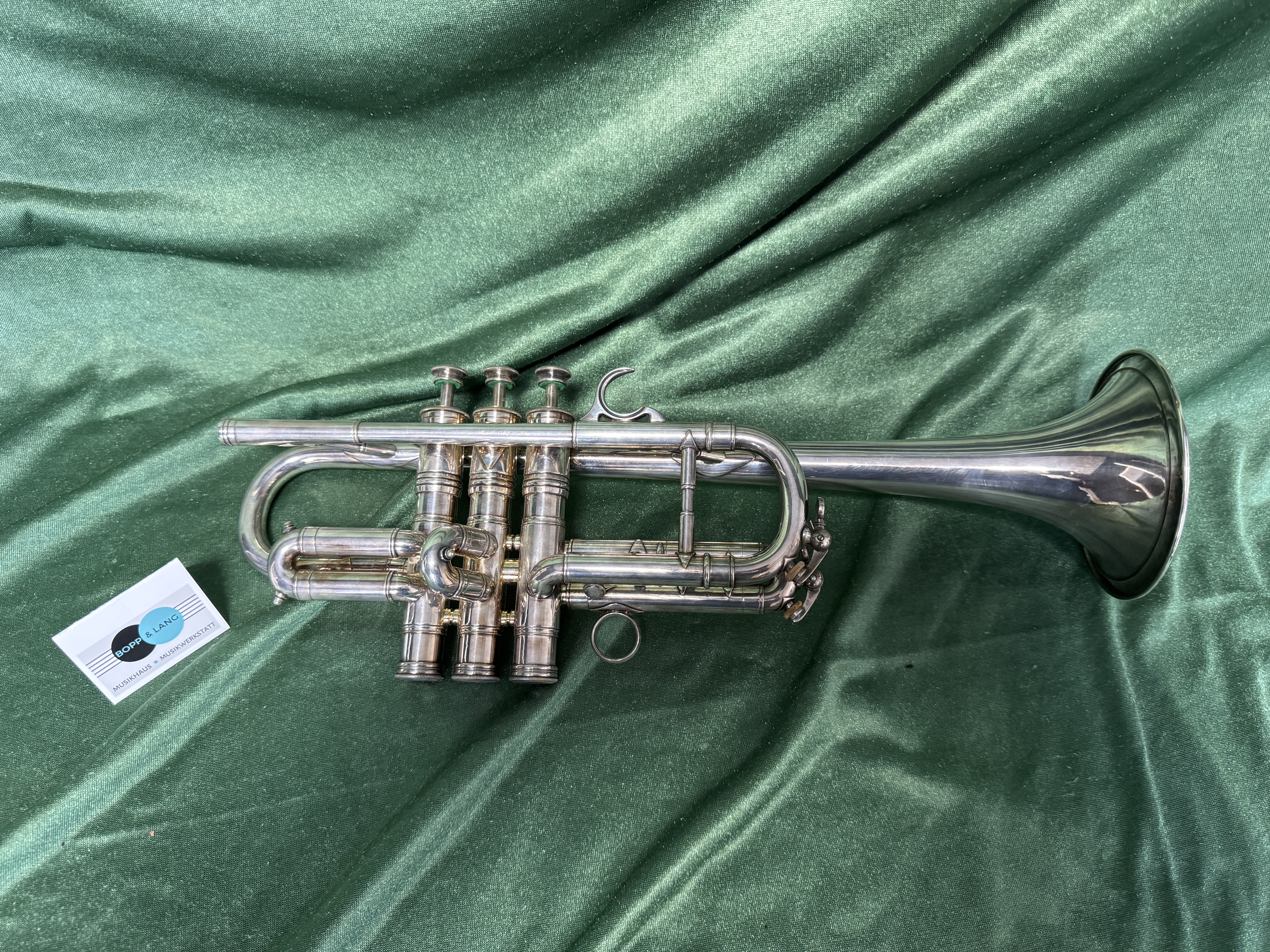 Die Trompete wurde in unserer Fachwerkstatt komplett gereinigt und technisch überholt. Die originale Versilberung ist vollständig erhalten.